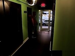 Redhead Ladyboy in Pink Dress Strips Black Panti