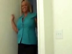 Blonde BBW milf helps his neighbour young boy with a blowjob