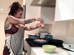 Captivating blonde slut gobbles up a large th