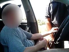 sexy blonde pierced nipples car handjob