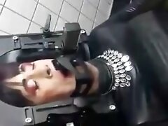 slave is punished with safety pins in tits